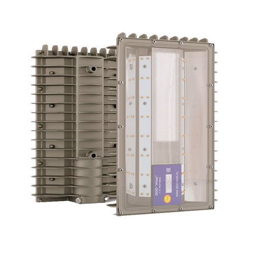 Уличный светодиодный взрывозащищенный светильник АТ-ДКУ применяется для освещения объектов нефтегазовой отрасли прилегающих к ним территорий, а так же железнодорожных платформ.